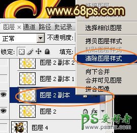 6、按Ctrl + J 把当前文字图层复制一层,然后在图层面板当前图层缩略图区域右键选择“清除图层样式”,如下图。