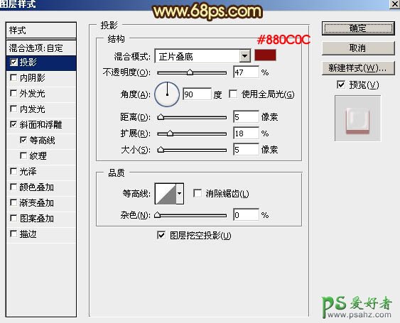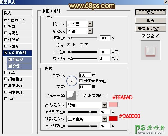 7、双击图层面板当前图层缩略图,重新设置图层样式,参数设置如图9 - 11,确定后把填充改为:0%。效果如图12。
