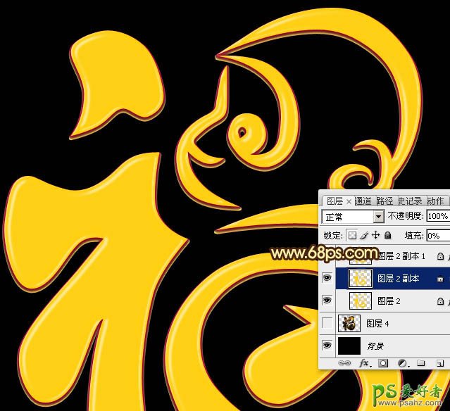 PS金属立体字制作教程:设计金黄色华丽效果的三维立体铬金福字