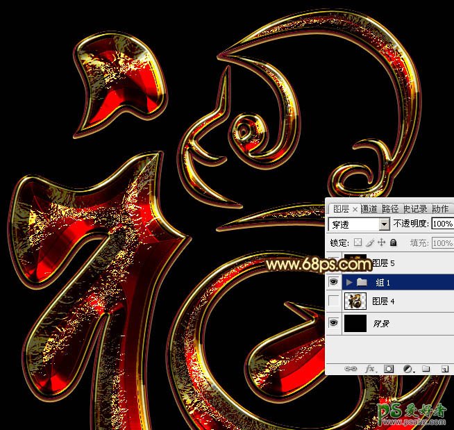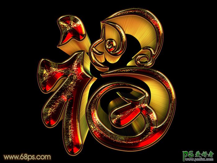 PS金属立体字制作教程:设计金黄色华丽效果的三维立体铬金福字,教程重点是表面字部分的制作,用到了多个文字图层及多组图层样式;每一个图层增加不同的效果,叠加到一起实现最终的字效,这种字我们在设计节日海报,宣传化的时候常用得到,喜欢的朋友们好好学习一下吧。
