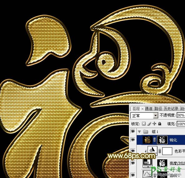 24、按住Ctrl + 鼠标左键点击原文字缩略图载入文字选区,然后添加图层蒙版,再把不透明度改为:30%,效果如下图。