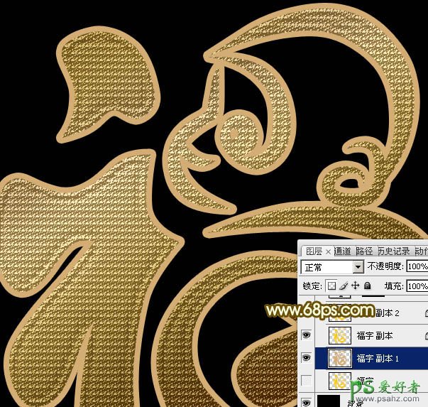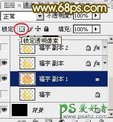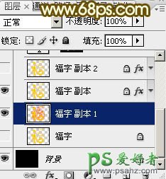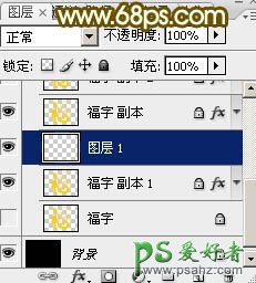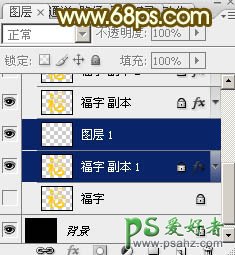 9、按住Shift键 + 鼠标左键点击图层面板“福字副本1”缩略图把两个图层选择起来,如下图。