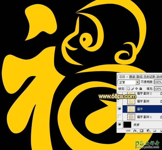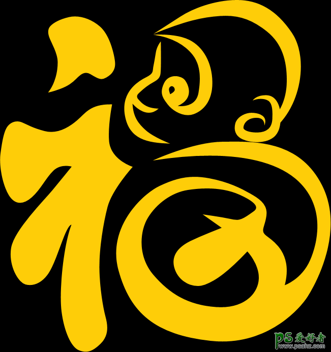 2、新建一个1024 * 768像素的画布,背景填充黑色。点击下面的文字素材图,然后右键选择“图片另存为”保存到本机,再用PS打开保存的文字图片,用移动工具拖到新建的画布里面,命名为“福字”,如下图。