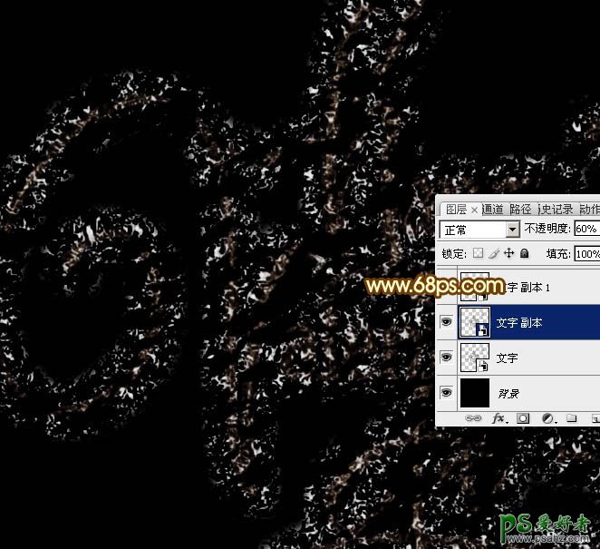 4、按Ctrl + J 把当前文字图层复制一层,不透明度改为:60%,增加纹理亮度,效果如下图。