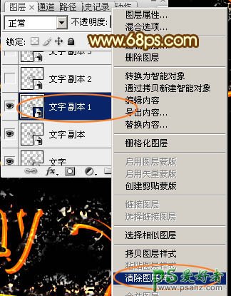 5、按Ctrl + J 把当前文字图层复制一层,然后在图层面板当前图层缩略图蓝色区域右键,选择“清除图层样式”,效果如图9。