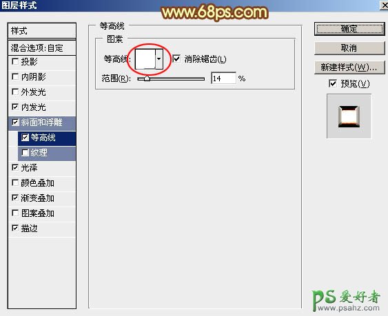 等高线:点击等高线缩略图编辑曲线,如图11,其它设置如图10。