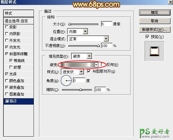 描边:填充类型选择“渐变”,渐变设置如图16,其它设置如图15。