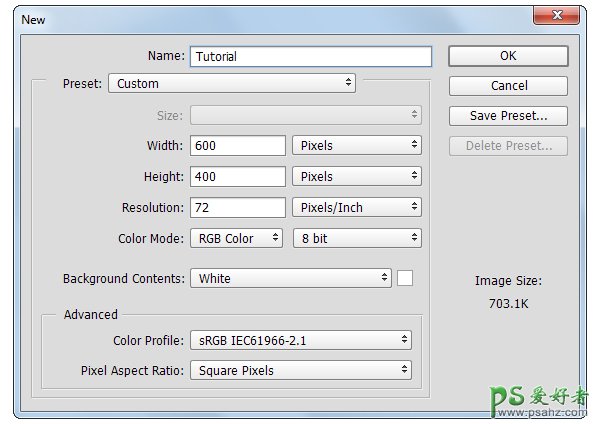 我们要新建600*400的图层,具体设置如图所示哦~