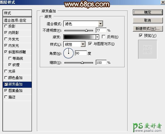 渐变叠加:混合模式“滤色”,渐变色设置如图22。