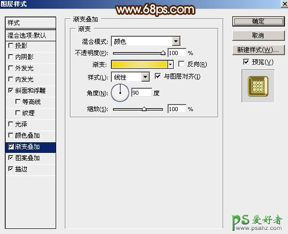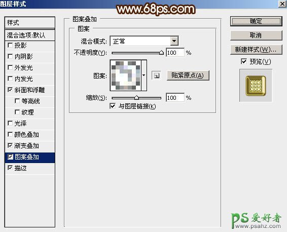 图案叠加:图案选择之前我们定义的钻石图案,其它设置如下图。