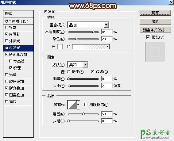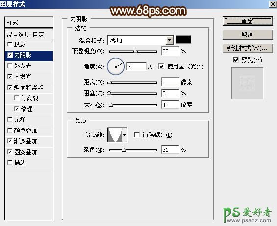 8、给当前图层设置图层样式。 内阴影:混合模式“叠加”,其它设置如下图。