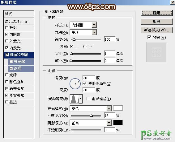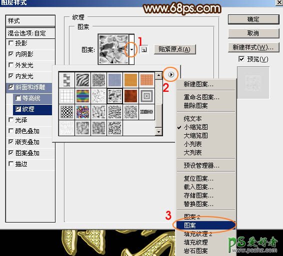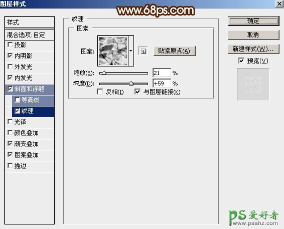 纹理:这是PS自带的图案,如果没有可以按照图20所示的方法载入。
