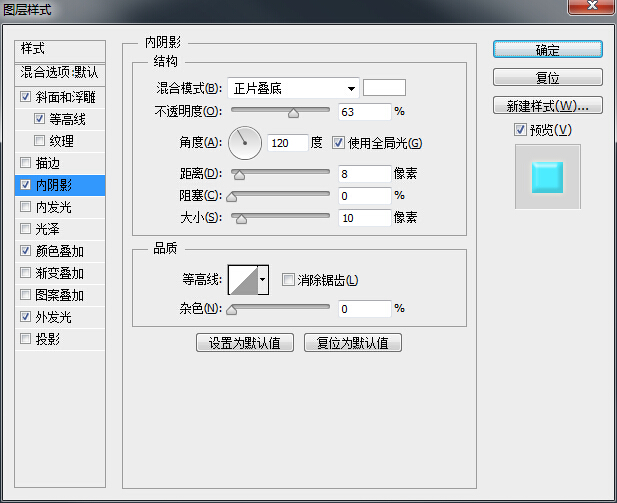 2、添加内阴影