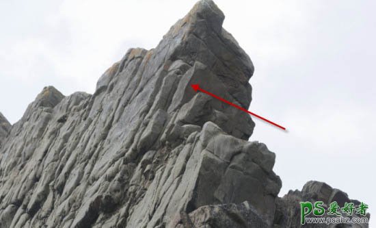 2、岩石结构加载到Photoshop并选择岩石的顶端,如下所示。