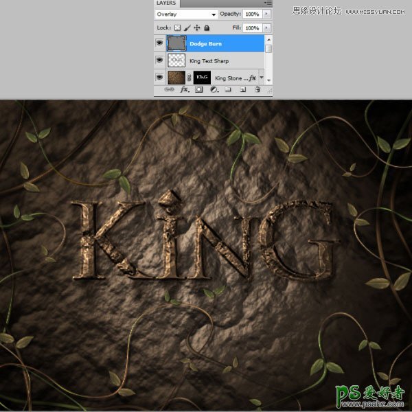 67、选择加深工具给藤蔓增加一点阴影,如下图。