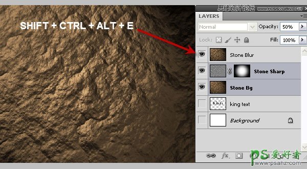 20、新建一个图层,按Shift + Ctrl + Alt + E 盖印图层,并命名为“Stone Blur”。
