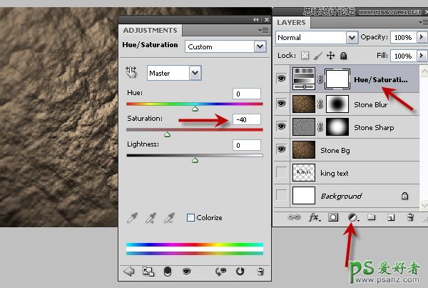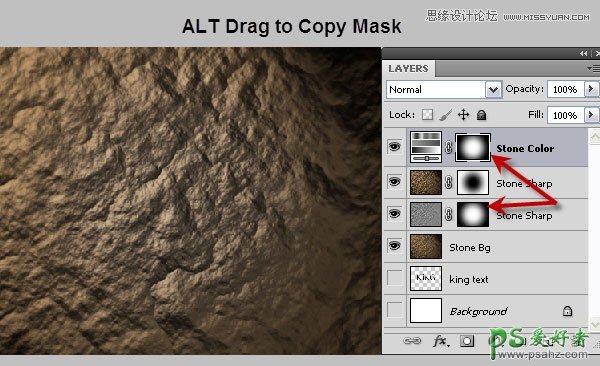 24、把色相/饱和度调整图层命名为“Stone Color”。选择“Stone Sharp”图层,按住Alt键鼠标左键点击蒙版,得到蒙版放大图,按Ctrl + A 全选,按Ctrl + C复制,选择“Stone Color”图层按Ctrl + V 粘贴,再按住Alt键鼠标左击蒙版,效果如下图。