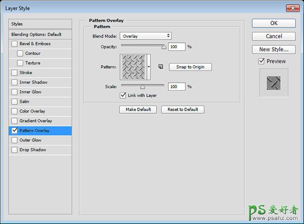 2、双击背景层副本,使用图层样式,混合模式: 叠加,图案:DP1-E。