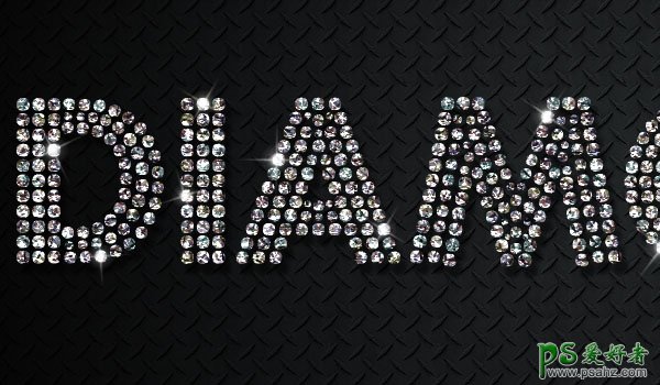 利用PS软件图层样式设计钻石颗粒拼接效果的文字,钻石字体,钻石字样式非常不错。过程:先选择一款小点字体,输入想要的文字并复制一层;然后给两层文字分别添加图层样式,底层文字主要做出钻石效果,副本图层用来渲染颜色和增加细节;最后添加一些星光笔刷装饰即可。 最终效果