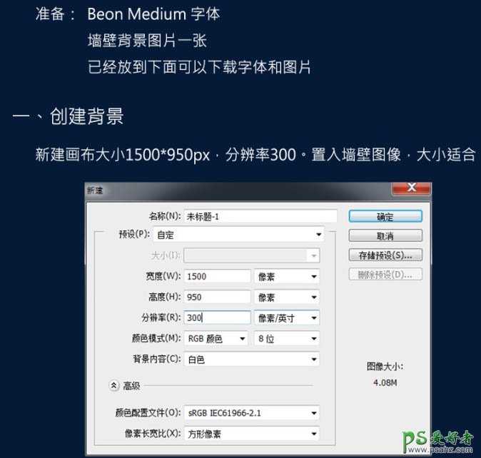 1、新建画布,大小1500 * 950像素,分辨率为300,置入墙壁图像,大小适合。