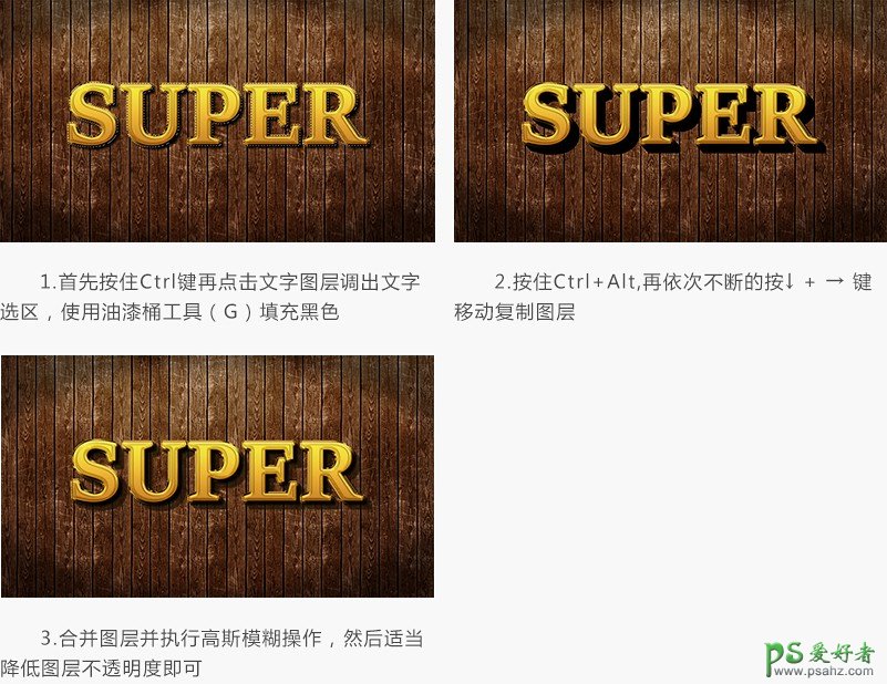 这两层的样式设置好后,文字的大概效果已经出来了,但立体感不强,在这里可以用制作长阴影的方法制作阴影,原理是向某一角度不断移动。
