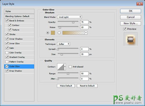 第9步:外发光设置。