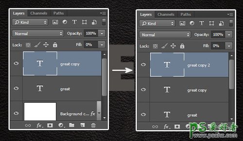 第2步: 复制文字图层,填充值设置为0,再复制一层。