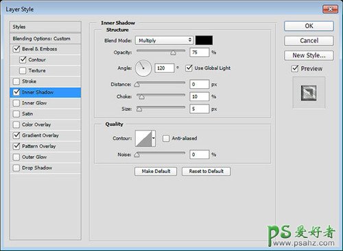 第3步: 内阴影设置。