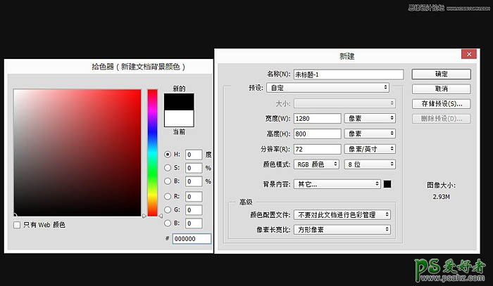 1、创建一个新的文档(不建议特别大),并填充背景为黑色。