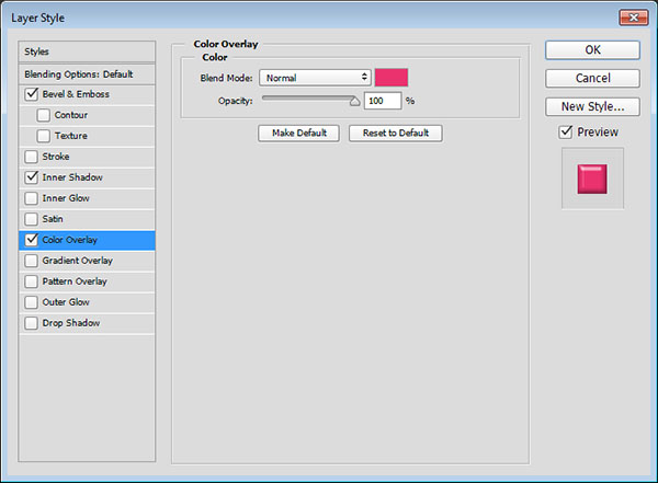 添加颜色叠加样式,进行下面的设置: