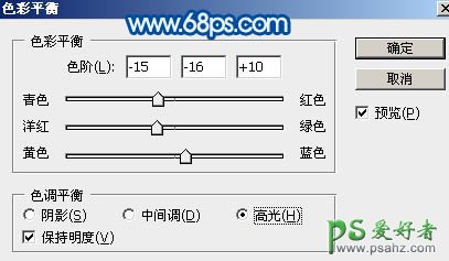 22、创建色彩平衡调整图层,对高光进行调整,参数设置如图30,确定后把图层不透明度改为:50%,效果如图31。