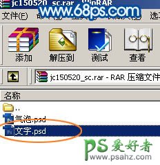 2、点这里下载教程中的素材包,保持到本机,解压后有两个文件,先选择“文字”PSD,用PS打开,把文字拖到新建的文件里面。