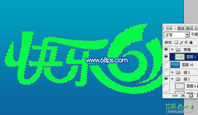 4、按住Ctrl键点击文字缩略图载入文字选区,如下图。