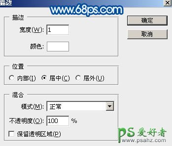 5、新建一个图层,选择菜单:编辑 > 描边,参数设置如图6,确定后取消选区,再把原文字图层隐藏。