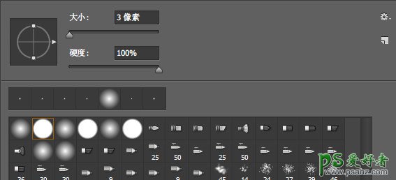 选择一个“硬边圆”笔刷,大小稍微调小一些