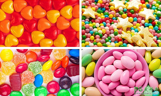 在创作之前首先从网上收集相关素材,百度“糖果”即可,通过观察我们发现了糖果的以下特征,色泽艳丽、有光感、有的糖果上还有一粒一粒的小豆豆,明确了这些特征那么做这个文字特效就简单多了。