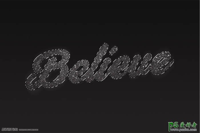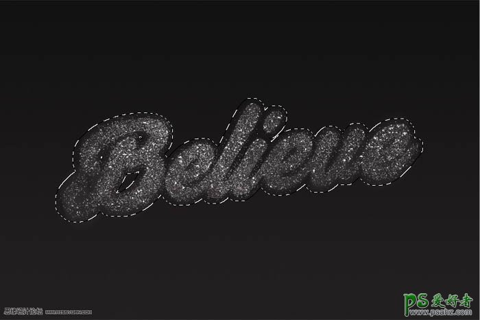 4、给文本选区添加笔刷(点这里下载教程中的笔刷)。在径向模糊图层之上新建一个图层,使用粉尘笔刷,直径约500,在选区内使用笔刷。