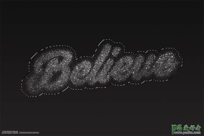7、添加背景及一些前景碎片,取消文字选区,新建一个图层,使用粉尘笔刷在文字周围添加一些粉尘。