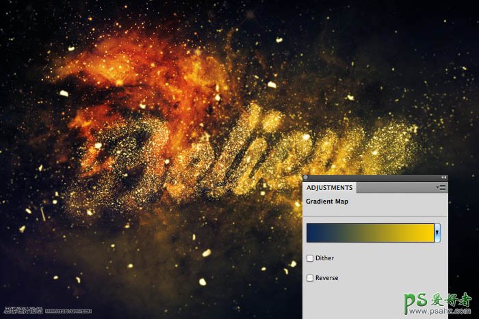 10、最终微调图层。从图层最底部添加一个渐变映射,颜色从#0a2a59到#ffd200。