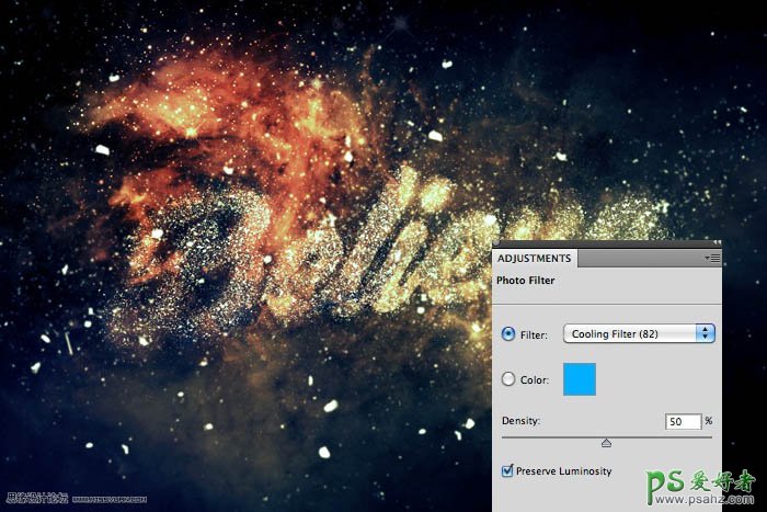 利用photoshop笔刷素材设计梦幻星空粒子字体-星云字效