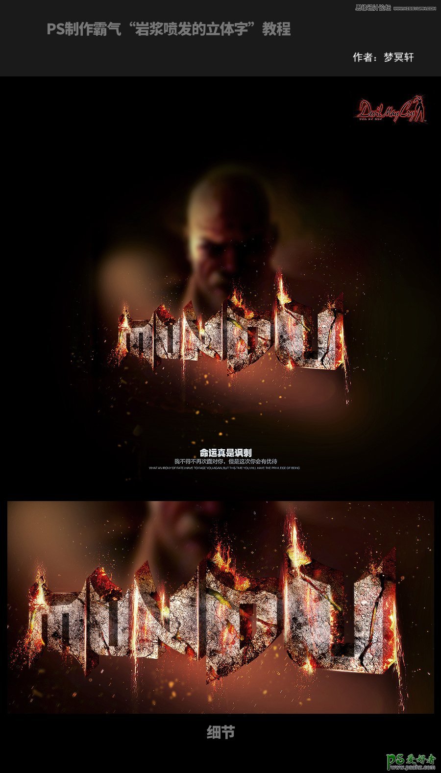 :设计超酷的3D岩石艺术字-岩浆喷发艺术字,字体的整体效果非常漂亮,质感也非常强,质感部分和立体面我们用图层样式就可以完成,喜欢这款字体的朋友们学一下吧!