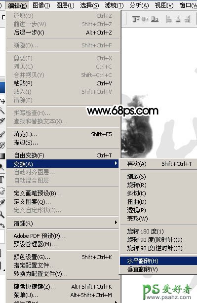 6、选择菜单:编辑 > 变化 > 垂直翻转。
