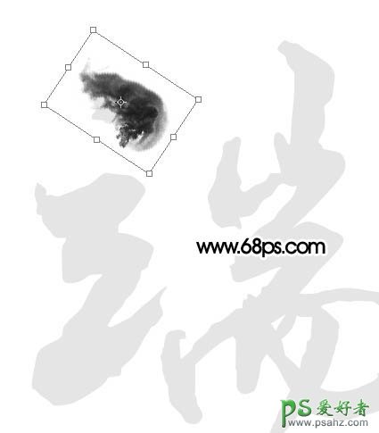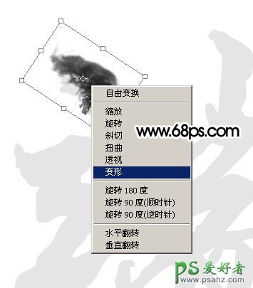 7、按Ctrl + T变形,先拖到文字的笔画上面,再旋转合适的角度,如下图。