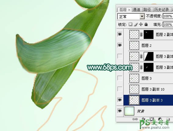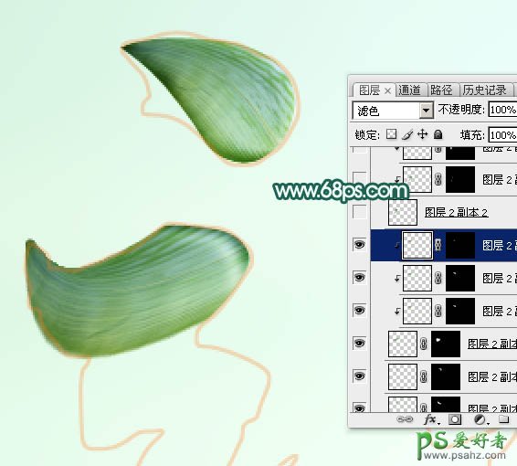 23、复制背面棕叶,移到组的最下面,同样的方法变形,效果如下图。