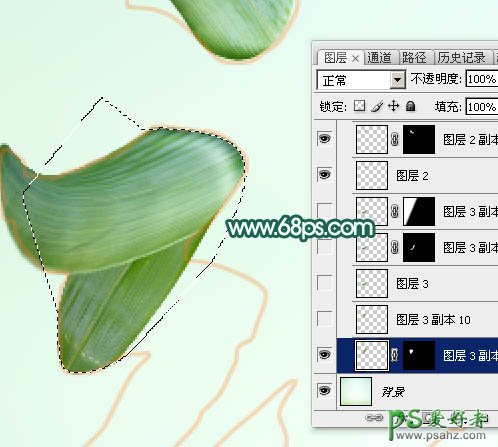 PS字体特效教程:设计清新唯美风格的端午节棕叶字体-玉石字体,这款字效有种大气的手写风格,让人看上去非常有气势,教程中会用到文字和棕叶素材;用变形工具把棕叶分段贴到文字上面,处理好暗部及高光效果;再把各段连接起来,调整好颜色和细节即可。 最