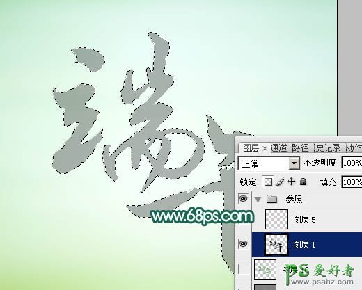 4、按住Ctrl键点击文字缩略图载入文字选区,如下图。