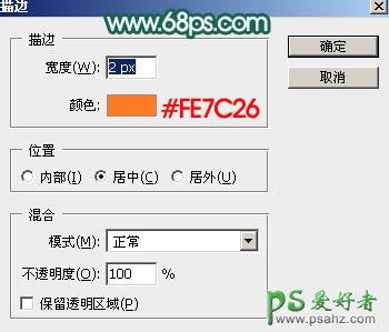 5、新建一个图层,选择菜单:编辑 > 描边,参数设置如图6,确定后取消选区。