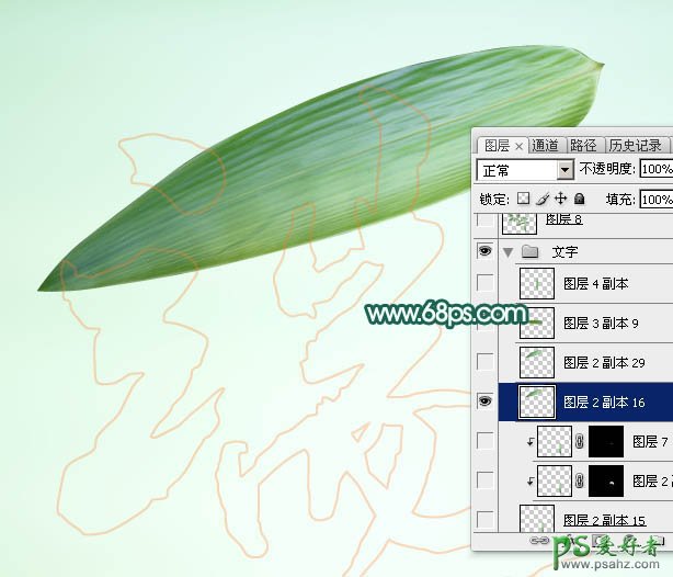 9、把正面的棕叶图层复制一层,原图层隐藏,如下图。