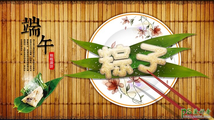主要部分已经制作完成了,接下来就是为整幅图添加一些装饰,比如说添加一些装饰性文字、添加一双筷子可以营造空间感以及加一个小边框什么的,这一部分并没有什么教程,完全是靠自己自由发挥,毕竟萝卜青菜各有所爱嘛。