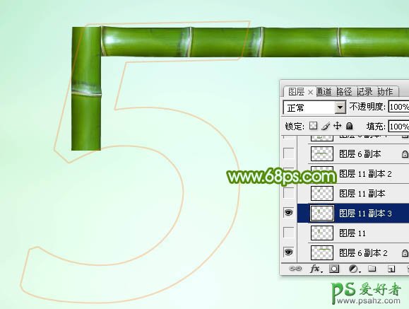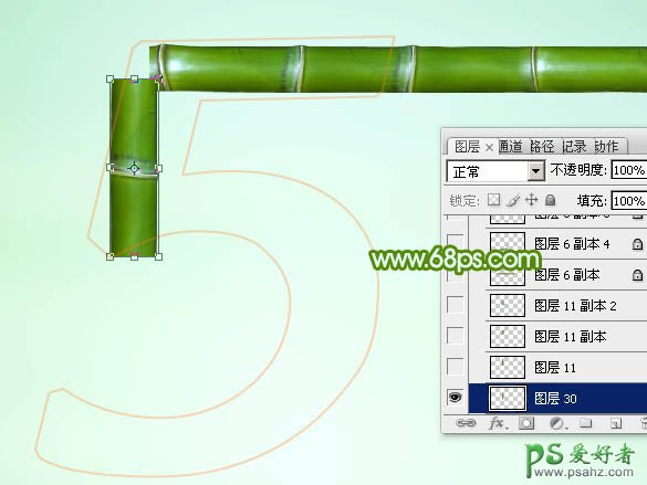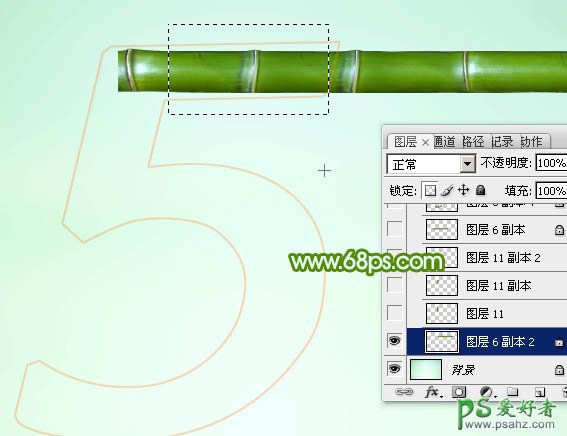 9、选择矩形选框工具,拉出下图所示的选区,按Ctrl + J 把选区部分的竹节复制到新的图层。